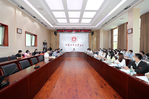 葛世荣首先代表全校师生员工对27名优秀人才选择加入矿大,成为学校事业的建设者表示热烈的欢迎和衷心的感谢。葛世荣向新入职的教职工讲述了学校百十年办学历程和文化传承,并对新教工提出了三点希望和要求。第一要热爱矿大,要时刻展现矿大人的自信,作为矿大的一份子,要爱校如家,与学校同舟共济,共创学校的未来。第二要融入矿大,要找准自己的定位和发展方向,爱岗敬业,努力修炼基本功,不断提升业务素质,尽快成长,做有理想信念,有道德情操,有扎实学识,有仁爱之心的“四有好老师”。第三要成就矿大,要结合自身专业特色,抢抓机遇,在本职岗位上实现自身价值,为学校建设成世界一流能源科技大学努力奋斗。